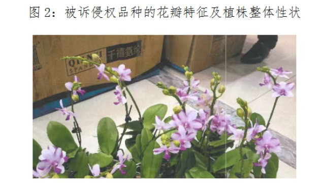 最高人民法院二审审理后认为,因并无农业农村部保存的“钜宝紫水晶”标准样品,该案缺乏有效证据证明涉案检测报告使用的对照样品系授权品种“钜宝紫水晶”的繁殖材料,故该报告尚不足以单独证明被诉侵权品种与授权品种具有同一性。该案中,创某公司使用“紫水晶”名称销售侵权产品,所使用的品种名称系“钜宝紫水晶”的核心识别要素,与授权品种名称相似,且创某公司未能提供证据证明其所销售蝴蝶兰命名为“紫水晶”的合理依据,根据“一品一名”的植物新品种命名规则,被诉侵权品种系授权品种“钜宝紫水晶”的可能性较大。而且,经二审合议庭比对“钜宝紫水晶”DUS测试报告(见图1)和涉案公证书中的被诉侵权植株照片(见图2),被诉侵权植株和授权品种在主要性状方面具有高度相似性。涉案检测报告虽系权利人自行委托检测,但也可以用于进一步佐证被诉侵权“紫水晶”与“钜宝紫水晶”系同一品种的可能性。综合来看,本案在案证据能够证明被诉“紫水晶”蝴蝶兰植株与“钜宝紫水晶”蝴蝶兰品种系同一品种的事实具有高度可能性,在创某公司未能提交育种来源等反驳证据的情况下,可以认定被诉侵权品种与授权品种具有同一性。在此基础上,二审法院判决驳回创某公司上诉,维持一审判决。
